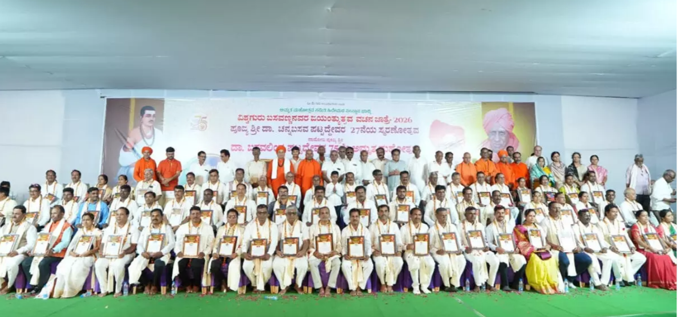 Teachers play a vital role in shaping the future of the nation, said Gurubasava Pattadevaru at a felicitation programme held in Bhalki. He was speaking during an event organized on the occasion of Basavanna Jayanti, Vachana Jatra–2026, the 37th memorial of Dr. Channabasava Pattadevaru, and the Amruta Mahotsava of Nadoja Dr. Basavalinga Pattadevaru, where 75 teachers were honoured for their service.