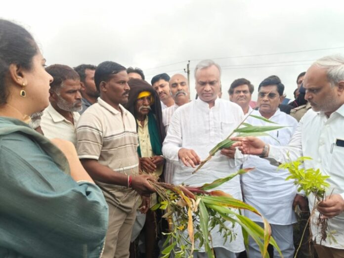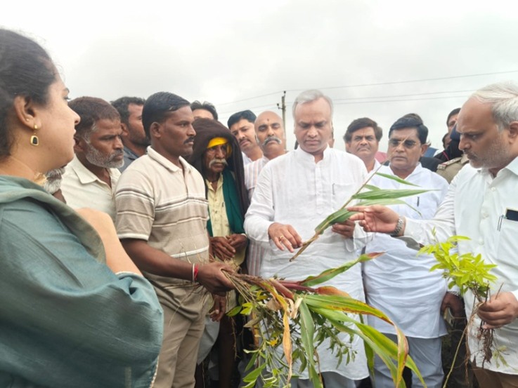 He inspected crops damaged by the rains in the taluk and spoke directly to farmers about their losses. Minister Kharge further examined damage to other crops, including togari, on the outskirts of the village.
