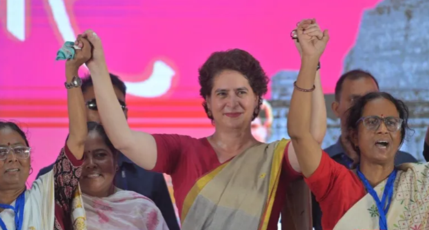 Priyanka Gandhi promises women’s allowances, land, jobs, and empowerment initiatives