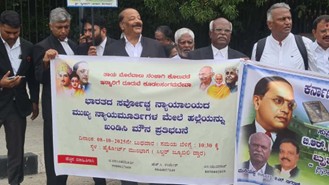 The protesting lawyers said the incident was part of a systematic effort to discredit constitutional equality and warned that caste and hate politics were threatening democratic institutions.