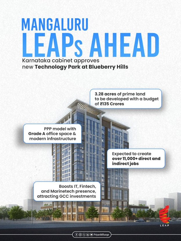 The Karnataka state cabinet has approved a proposal for the development of a new Technology Park at Blueberry Hills in Mangaluru, marking a major boost to the coastal city’s growing digital and innovation ecosystem.