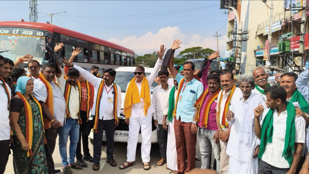 The protest saw participation from several Kannada activist leaders, including Karunadu Seve State Vice President Aizuru Jagadeesh, District President C.S. Jayakumar, and other prominent members such as Gangadhar, Bhargavi, Sudha, K. Jayaraj, Arjun, Muddumallayya, Santosh Gowda, Kumar, Shivamoorthy, Kemparaju, Manjunath, Krishnamurthy, and Parthasarathi.