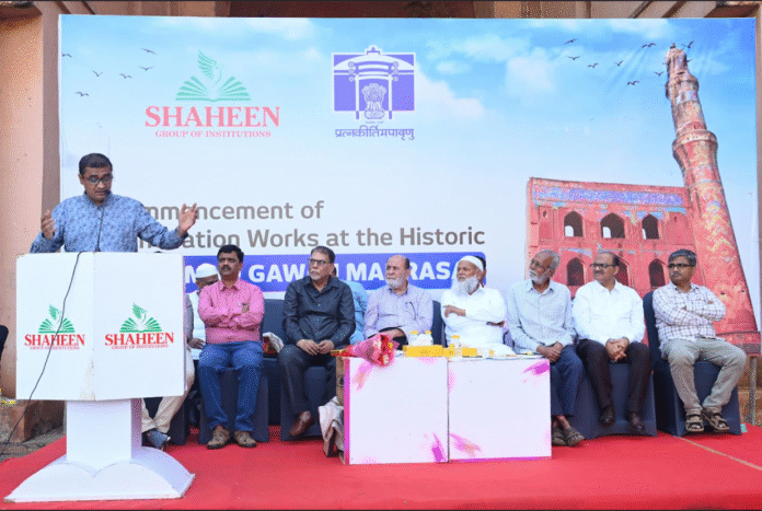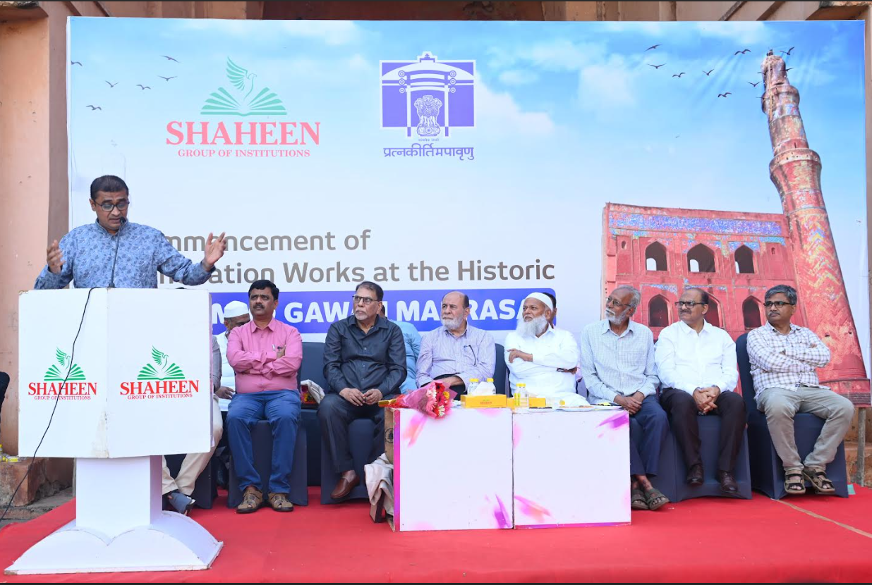 The Shaheen Education Group, which has adopted the historic Mahmūd Gāvān Madrasa, has initiated extensive renovation works at the site, aiming to restore its heritage and make it a key tourist attraction. The inauguration ceremony for the project was held on Friday within the madrasa premises, with the group’s president, Dr. Abdul Khadeer, addressing the gathering.