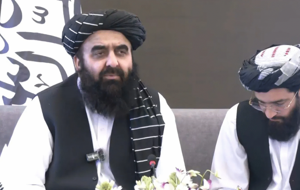 Visiting Afghan Foreign Minister Amir Khan Muttaqi on Sunday asserted control over the Afghan Embassy in New Delhi, with the Islamic Emirate’s flag prominently displayed behind and in front of him.