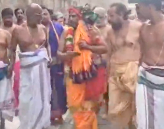 Shri Raghavendra Swamy Math Pontiff, Subhudendra Teertha, paid a ceremonial visit to the Sri Ranganath Swamy Temple in Srirangapatna. During the visit, the temple administration formally welcomed the pontiff with a grand palanquin procession, according to temple sources.