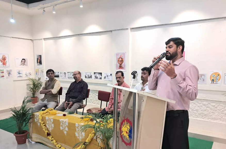 Senior cartoonist James Vaz, the chief guest, highlighted the uniqueness of cartoons, noting that observing people and surroundings closely inspires satire, allowing artists to develop their style. Veteran cartoonist Jeevan Shetty and Udupi District Working Journalists’ Association Secretary Nazir Polya were also present. The Nammooru Chitra Kala awards were presented during the event.