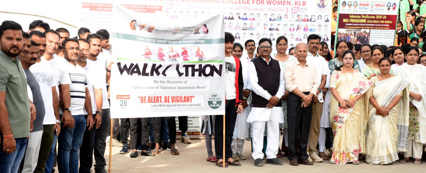 Students of Sharnbasva University and Appa Public School organised a walkathon on Sunday in Kalaburagi to mark the observance of Vigilance Awareness Week. The event, arranged by the Faculty of Business Studies, aimed to spread awareness about the need to fight corruption and protect the rights of women and weaker sections of society.