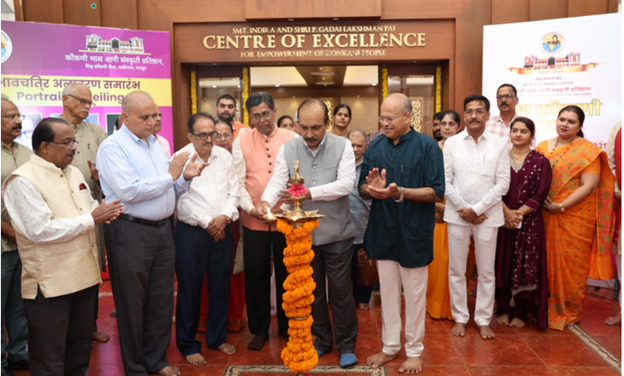 Portraits of six eminent Konkani personalities—Mukund Prabhu, Roki Miranda, Eric Ozario, Madhavi Sardesai, Gokuldas Prabhu, and Ullal Mohan Kumar—were unveiled at the World Konkani Hall of Fame.