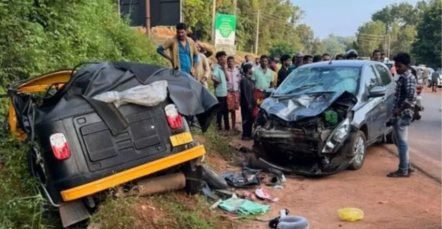The autorickshaw, traveling from Puttur towards Tingaladi, collided head-on with a car coming from Sullia to Puttur near the Abrod Hall area. The impact was so severe that the autorickshaw was completely mangled.