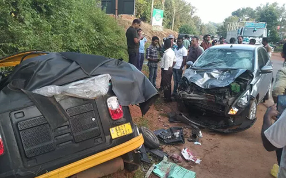 A tragic accident on the Mani–Mysuru National Highway claimed the lives of a four-year-old girl and her grandmother after a car and an autorickshaw collided near Parpunj Abroad Hall at Innomogaru village on late Saturday.