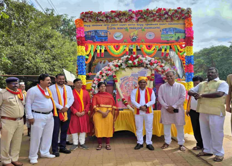 Nagaraja Boomannavar, a driver from the Hubballi Rural 1st Unit, spent over one lakh rupees of his own money and labor to turn the bus into a Kannada Terani. The vehicle now features maps of all 31 districts of Karnataka, information about freedom fighters, notable personalities, Basavadi leaders, and a small library containing books about Kannada literature, history, and the growth of the transport department.