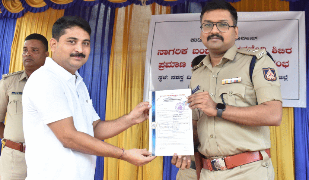 The Udupi District Police organised a certificate distribution ceremony at the Armed Reserve Police Centre, Chandu Maidan, marking the successful completion of a 20-day civilian firearm training camp. The programme, attended by 200 participants, underscored the department’s efforts to promote responsible firearm ownership and safety awareness among the public.