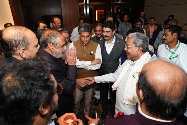 CAPTION: Chief Minister Siddaramaiah attends the launch of the 100th edition of the series “Dil Se with Kapil Sibal” in Delhi. Several leaders met the Chief Minister on the occasion.