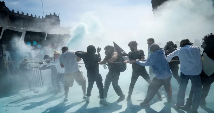 In Mexico City, tensions escalated when a small contingent of hooded protesters dismantled metal barriers surrounding the National Palace, where President Claudia Sheinbaum resides. Reuters witnesses reported clashes between demonstrators and riot police, who responded with tear gas. According to Mexico City Public Safety Secretary Pablo Vazquez, around 100 police officers were injured during the confrontation, 40 of whom required hospital treatment. He also reported 20 civilian injuries, along with 20 arrests and another 20 individuals detained for administrative violations.