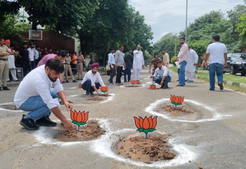 BJP launched phase two of its Bengaluru campaign, protesting Congress’s failure to fix potholes and manage garbage properly