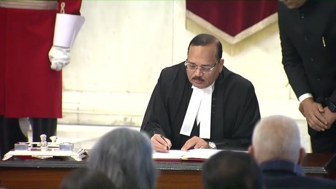 President Murmu administered the oath of office to Justice Surya Kant at the Rashtrapati Bhavan on Monday.