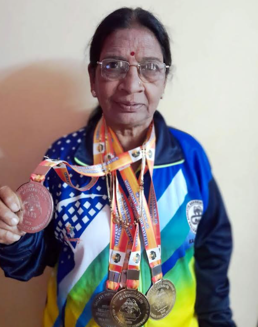 Chennamma Hede Bailur, a 74 year old retired teacher from Chennabasaveshwaranagar, has made her town proud by winning five medals at the 45th State Athletics Games held recently in Ballari. The event was organized by the Veteran Athletics Association of Karnataka along with the Veteran Athletics Association of Ballari.