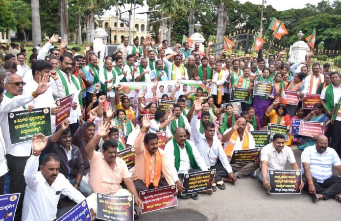 Farmers in Yelaburga gathered in protest on Sunday, demanding a proper support price for maize. BJP leaders joined the demonstration, accusing the state government of ignoring the struggles of farmers. Former minister Halappa Achar said the Congress government, led by Chief Minister Siddaramaiah, has failed to protect farmers’ interests at a time when they are facing severe hardship.