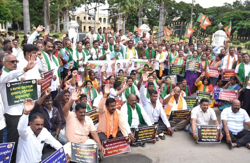 During the protest, BJP Mandal President Maruthi Hosamani and leaders Basavalingappa Bhuthe, Veeranna Hubballi, Suresh Gowda Shivana Gowda, and Hanchyalappa Talavara addressed the gathering. They said farmers work hard throughout the year, and it is the government’s duty to ensure they receive fair compensation for their produce.