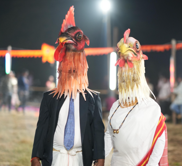The biggest attraction of the festival was the huge costumes of animals, birds, and mythological figures. Giant models of fish, dinosaurs, storks, tigers, chimpanzees, zebras, and turtles moved through the procession, surprising spectators with their bright colours and beautiful decoration. More than a hundred people worked together to create these replicas, and villagers applauded the youth who carried the heavy structures on their shoulders while dancing.