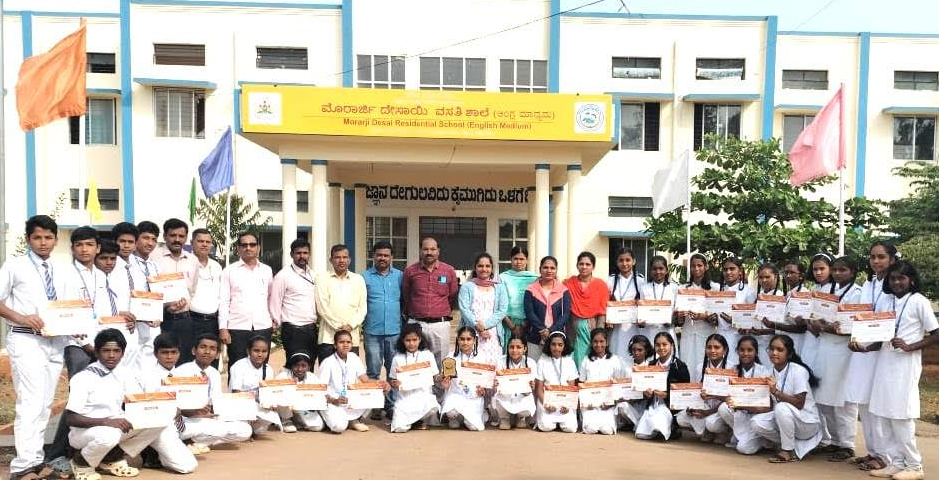 Students of K.R. Halli Morarji Desai Residential School in Bharamasagar have excelled in the recently held Cluster-Level Pratibha Karanji and Kalotsava competitions (Phase 2 and 3), securing first place in multiple events and earning selection to the taluk-level competitions.