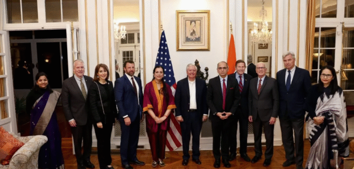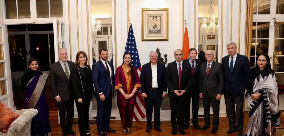The meeting took place at India House and brought together Republican Senators Lindsey Graham, Dan Sullivan and Markwayne Mullin, along with Democratic Senators Peter Welch, Richard Blumenthal and Sheldon Whitehouse. Kwatra said he was grateful for their support in strengthening the growing partnership between the two nations.