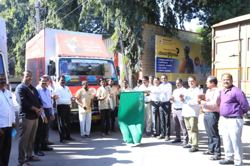 To promote awareness about the state government’s flagship five Panch Guarantee schemes—Shakti, Gruhjyothi, Annabhagya, Gruhlakshmi, and Yuvanidhi—along with other public welfare initiatives, the Department of Information and Public Relations organized a unique LED Art Jatha. The mobile exhibition was flagged off at the Deputy Commissioner’s office by Additional Deputy Commissioner Somalinga Gennur on Tuesday.