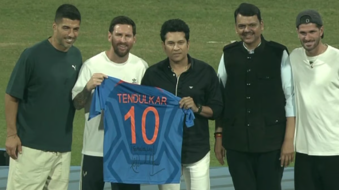 Lionel Messi met Sachin Tendulkar toward the end of the event. Sachin gifted Messi his India jersey from the 2011 Cricket World Cup. Speaking to the crowd, Sachin reflected on his memories at the Wankhede Stadium and highlighted the impact Messi’s presence could have on young athletes.