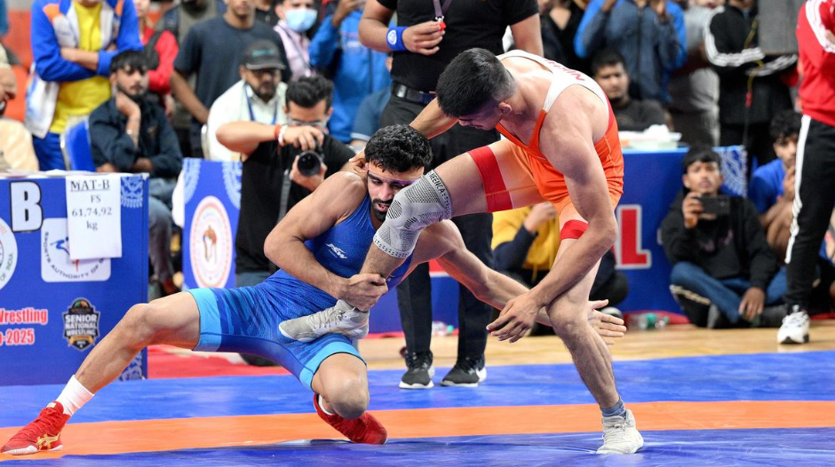 Paris Olympics bronze medallist Aman Sehrawat underlined his class and resilience by claiming the men’s freestyle 61kg gold medal at the National Wrestling Championships, despite battling a painful eyebrow injury, at the Veer Savarkar Sports Complex in Naranpura.
