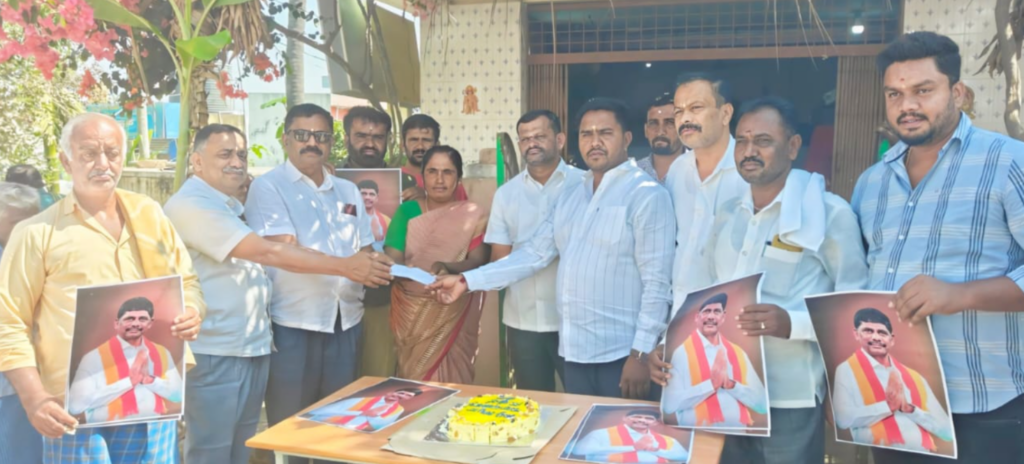 As part of the celebrations on Thursday, special prayers were offered at the Sri Basaveshwara Swamy Temple in the village. Following the rituals, party workers cut a cake and shared it among themselves to mark the occasion. The event, however, went beyond festivities, as financial support was provided to facilitate uniform distribution for anganwadi children, drawing appreciation from villagers and local leaders.
