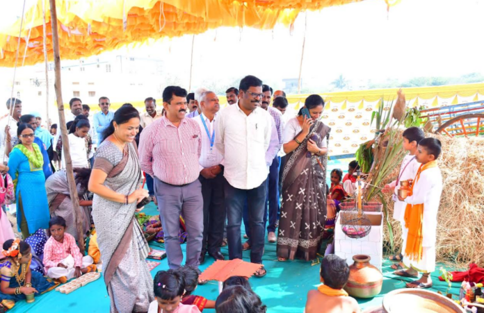 The exhibition showcased a wide range of student-prepared models and presentations that reflected rural life and traditional practices. Displays included models depicting rural household setups, traditional ornaments, bullock carts, cattle and poultry farming, well-water extraction methods, grinding and pounding techniques, vegetable cultivation, food markets, and artistic presentations of Karnataka’s heritage. Special attention was drawn to pictorial explanations of state landmarks and tourist destinations from across the district.