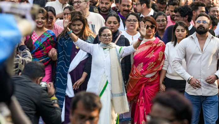 West Bengal Chief Minister Mamata Banerjee on Friday took to the streets of Kolkata to protest the Enforcement Directorate’s searches at the residence and offices of I-PAC chief Pratik Jain. Leading a rally with senior Trinamool Congress leaders, ministers, MPs, MLAs and party supporters, Banerjee accused the BJP-led Centre of using central agencies to target political opponents ahead of the 2026 Assembly elections.