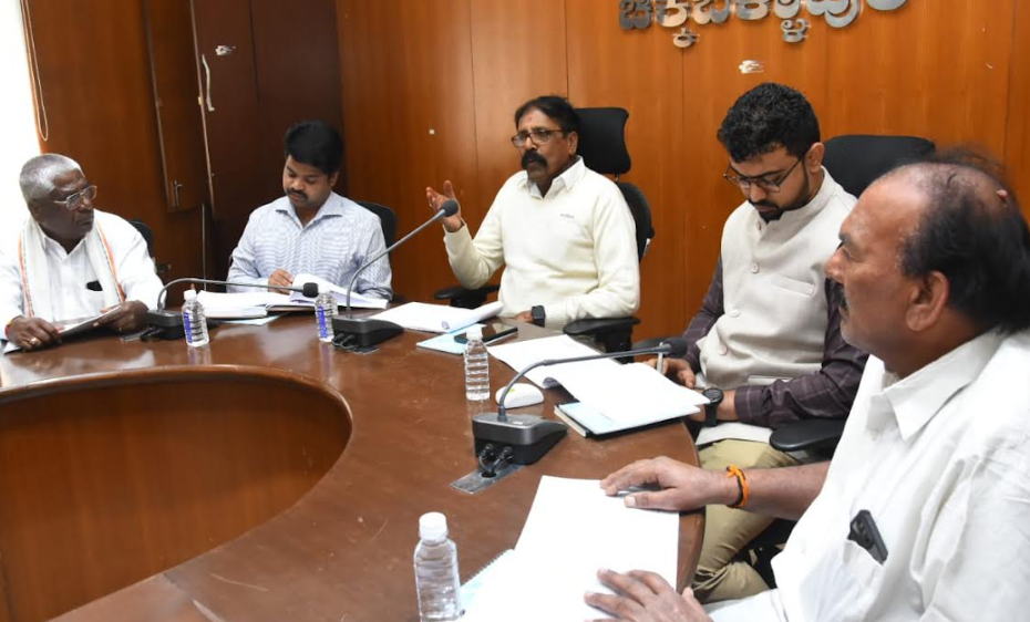 The review meeting was attended by Zilla Panchayat Chief Executive Officer Dr. Y. Naveen Bhat, Vice-Chairman Adireddy Ramakrishnappa, committee members Jayaram, Narayanaswamy, Nirmala Gangadhar, M.K. Venugopal, Radhakrishna, H.M. Muniyappa, along with officers and staff from various departments.