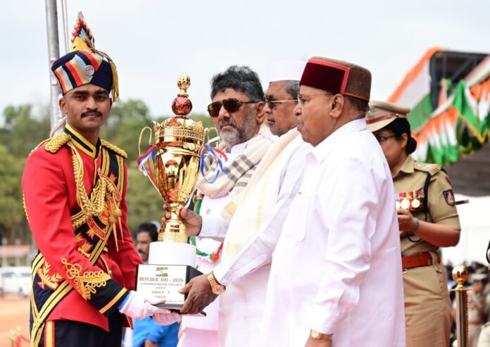 The award was presented in the august presence of the Governor Thawar Chand Gehlot, Chief Minister Siddaramaiah and Deputy Chief Minister DK Shivakumar felicitated the NCC Band by presenting them with the trophy, lauding their discipline, precision, and outstanding performance.