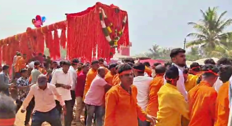 Women also play an important role in the celebration. Many are seen carrying decorated lamps on their heads as part of a traditional offering called “Deevaj Deepa.” The glowing lamps and devotional songs create a powerful spiritual atmosphere in the village.