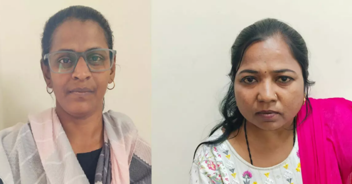 Lokayukta police caught an Anganwadi teacher and staff member accepting a bribe to release egg money at the Station Bazaar Anganwadi Center on Wednesday. The accused have been identified as Anganwadi teacher Heena and U.F.W.C. staff Pinkubai Gaikwad.