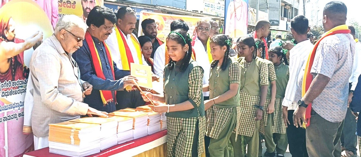 He said, “Distributing notebooks to over 500 underprivileged government school children, conducting health and eye check-ups, supplying grocery kits to old-age homes, and arranging a community meal—all in remembrance of this sacred occasion—is truly meaningful. Under the leadership of Kannadambe Rakshana Vedike president B.B. Rajashekhar, this is a socially responsible and collective welfare-oriented initiative. The Vedike has set an example for Kannada organisations.”