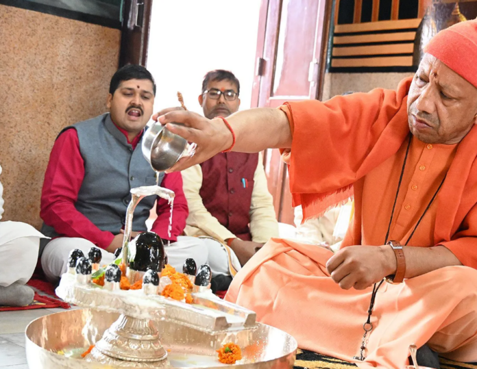 Chief Minister performs Rudrabhishek at Gorakhnath Temple in Gorakhpur.