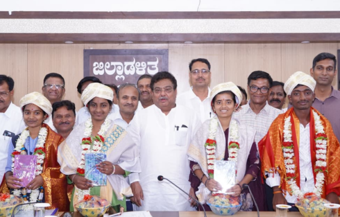 The students were honoured with shawls, mementos, and bouquets during the event. They expressed gratitude to their parents, teachers, and the government for their support in achieving success. Speaking on the occasion, the Minister said the district’s performance at the state level reflects its academic progress and instils confidence of achieving even better results in the future. MLAs Vittal Katakadond, Raju Gowda Patil and Ashok Managuli, Deputy Commissioner Dr. Anand K, ZP CEO Rishi Anand, SP Lakshman Nimbargi, PU DD C.K. Hosamani, officials from the Education Department, college principals, teachers, and parents were present