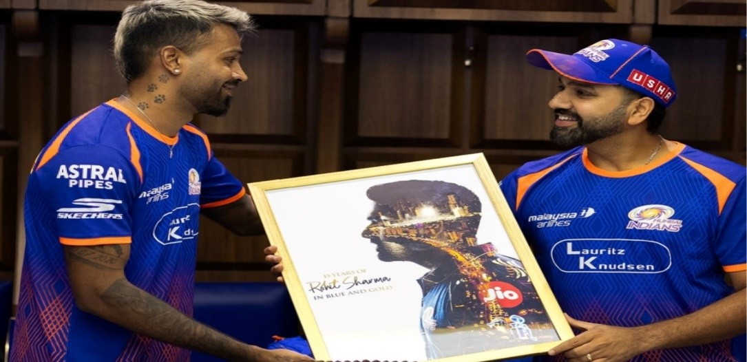 In an emotional dressing room moment, Mumbai Indians captain Hardik Pandya paid a heartfelt tribute to former skipper Rohit Sharma, celebrating his landmark 15th anniversary with the franchise. Pandya thanked the veteran opener for “leading the way” and serving as a constant source of inspiration for generations of cricketers within the team.