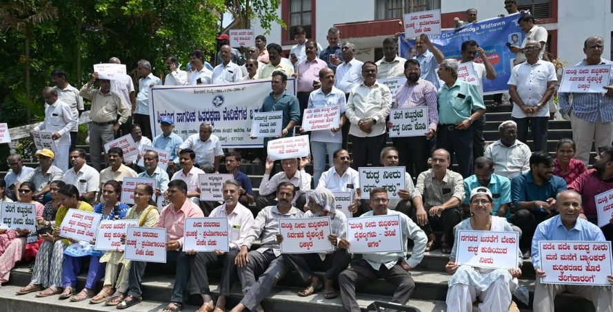 Residents of Shivamogga protested outside the Deputy Commissioner’s office alleging contaminated drinking water supply in several city areas. The protest was held under the banner of Shivamogga Nagarikara Hitarakshana Vedikegala Okkuta, a citizen welfare federation.