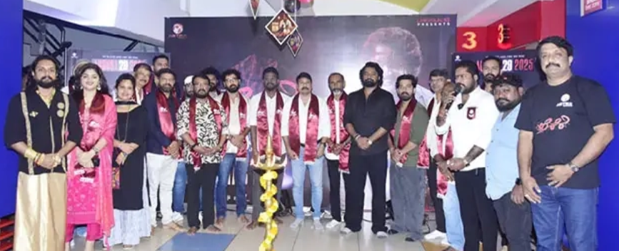 The event began with the traditional lighting of the ceremonial lamp, marking an auspicious start to the film’s release. Fans, actors, and their families gathered in large numbers, reflecting strong community support for Tulu cinema.