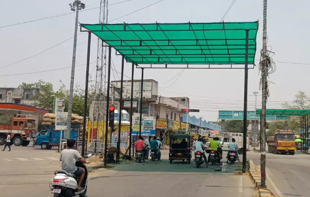 Raichur municipal body installs shade screens at traffic signals to protect commuters and traffic police from intense summer heat after public concern and media report.